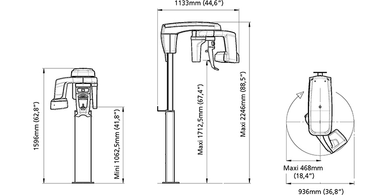 | X線撮影可能部位 | フルパノラマ、部分パノラマ、上顎洞、LA TMJ × 2 LA TMJ × 4、2D+ |