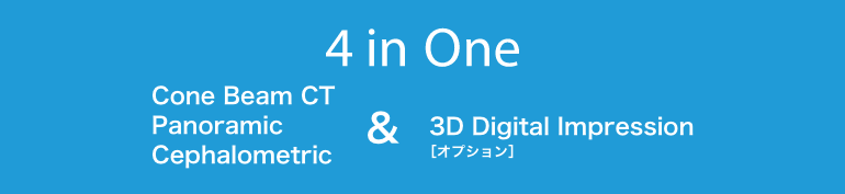 タイプ Panoramic, Cephalometric, Cone Beam CT 患者ポジション Standing(wheelchair accessible) 焦点 0.5mm 管電圧 60-90kVp 管電流 4〜17mA 重量 Pano + CT: 150kg
