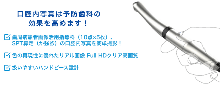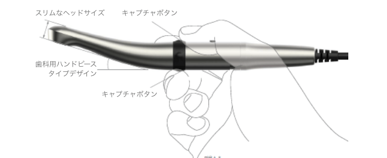- 小さなヘッドから口腔内のどこでも自由に撮影できます。